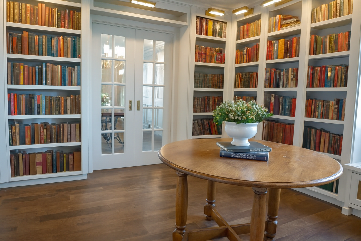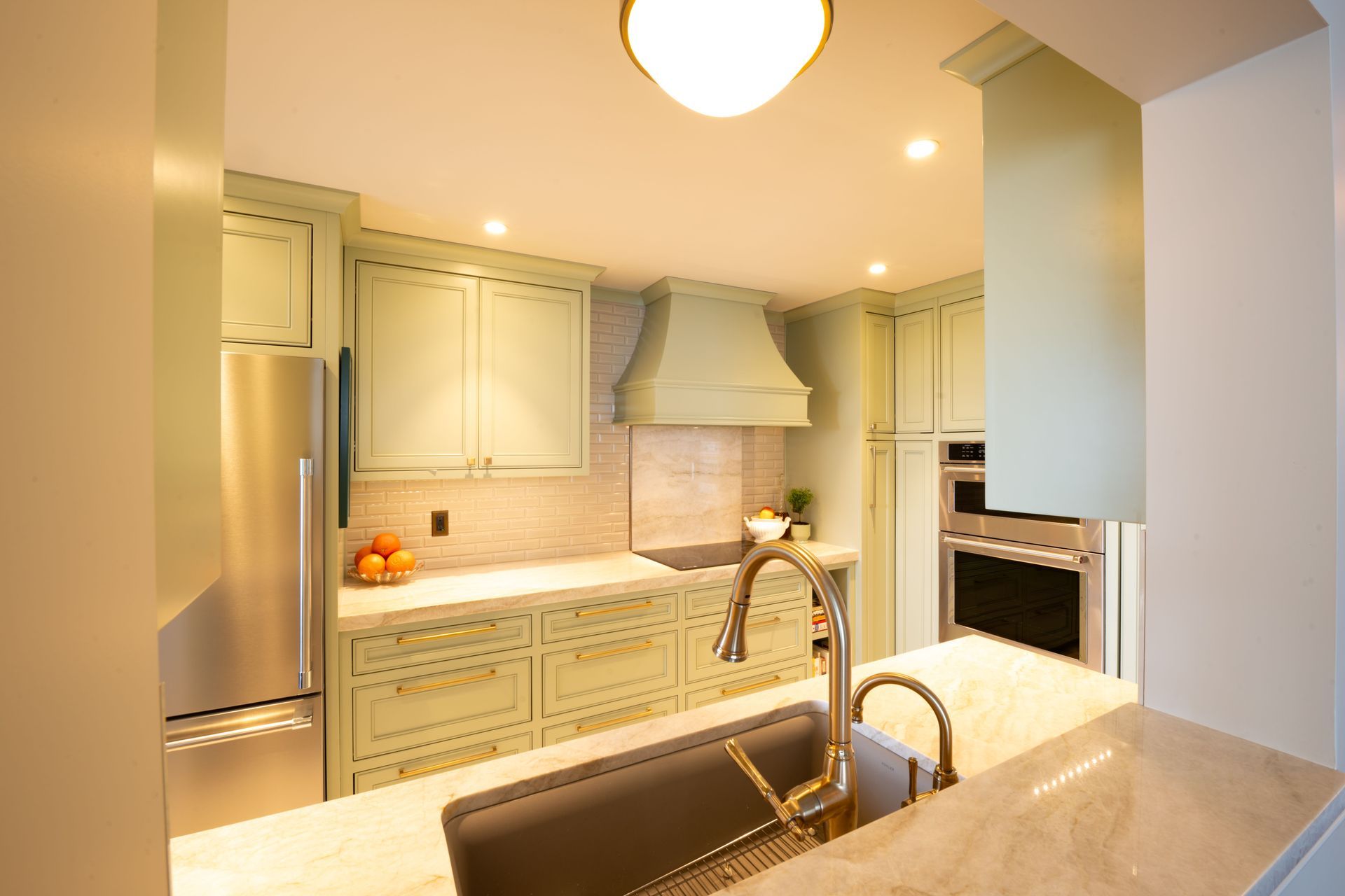 The University Heights project involved a full remodel of two merged condominiums for a couple planning to age in place. The renovation took the space down to the studs, allowing for a complete reconfiguration of the kitchen and entry layout. We designed a larger, more efficient kitchen while preserving a spacious and welcoming entry. A French door passthrough in the library was strategically positioned to connect the main living areas and enhance overall circulation throughout the home.